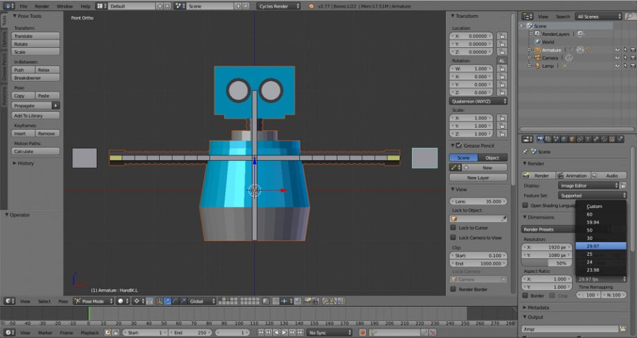 تحريك الروبوت باستخدام أدوات وتقنيات متقدمة في Blender